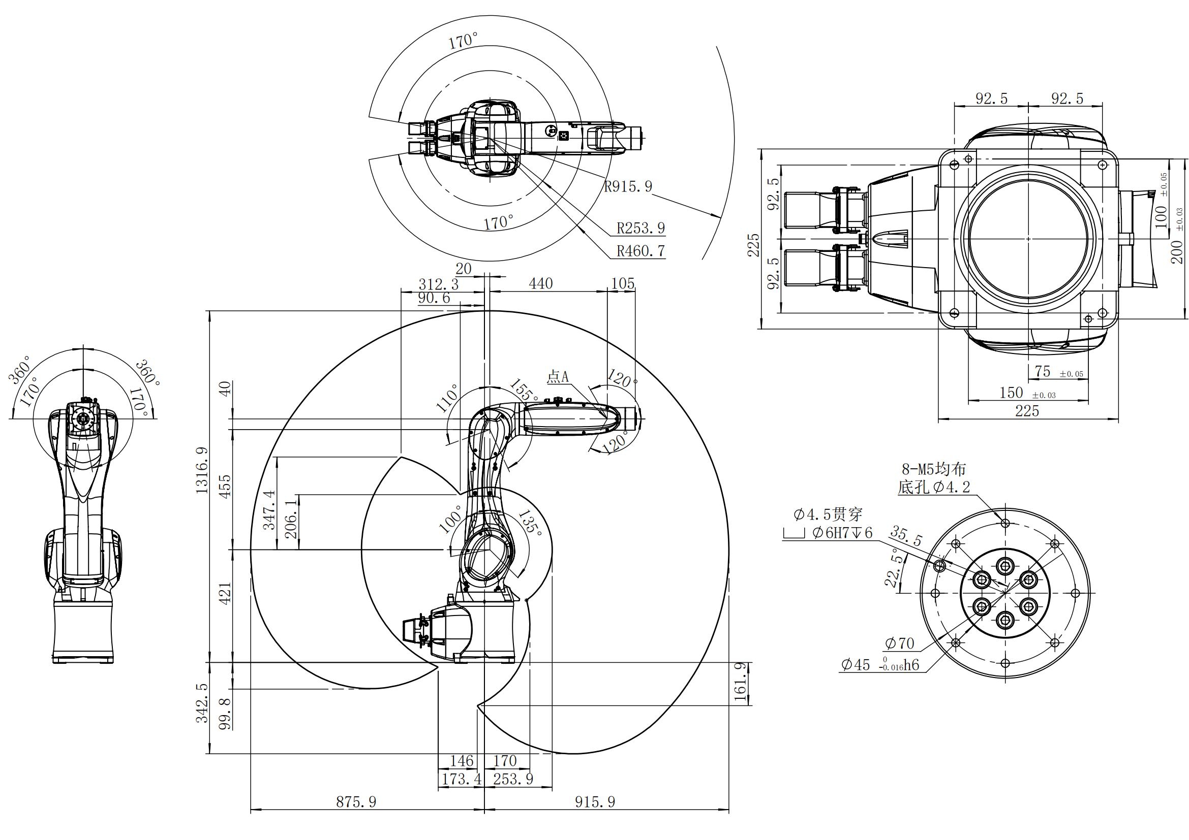 最大行程:'+65°至-200° 最大速度:370°/s